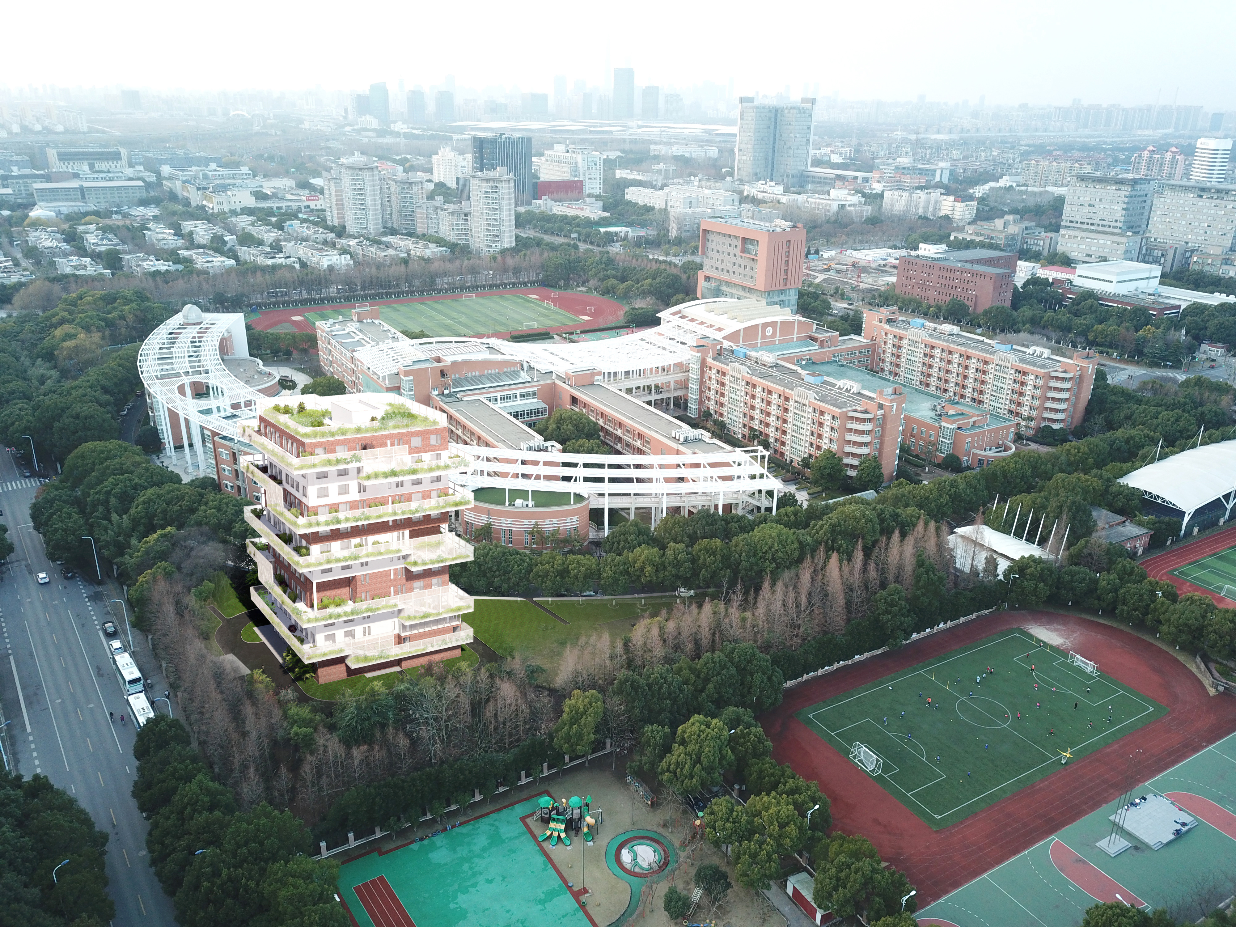 华东师大二附中科创大楼于2021年12月16日奠基,大楼由浦东新区投资1.55亿元建设,总建筑面积为17459平方米,地上13层,地下1层。设置计算机中心、工程技术中心、科创实验教室、数学教学基地、物理教学基地、专业科创实验室等功能用房和华二浦东教育集团培训交流用房,以及相应的辅助配套用房和地下停车库。大楼预计2023年9月建成交付。科创大楼外观效果图科创大楼设计效果图与会嘉宾共同为华东师大二附中科创大楼奠基培土 ...