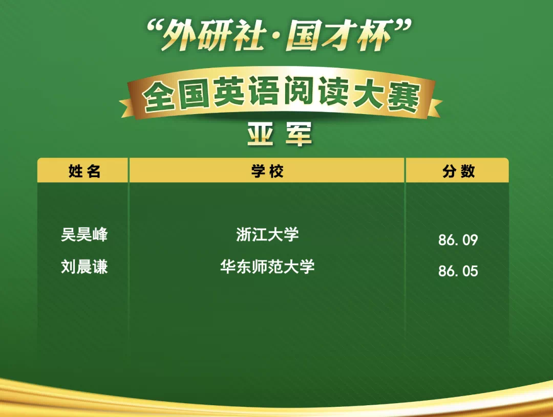 12月5日,“外研社·国才杯”全国英语阅读大赛在线上举行。本次大赛共有来自全国817所大学的30多万名参赛者参与比赛,最终93名选手入围决赛同台竞技。华东师大外语学院2019级英语专业刘晨谦同学在大学英语教学部夏萍老师的指导下脱颖而出,荣获特等奖(亚军),刷新我校参赛以来最好成绩。2019级英语专业本科生刘晨谦获“外研社·国才杯”全国英语阅读大赛特等奖(亚军) “外研社·国才杯”大学生英语挑战赛(Uchallenge)...