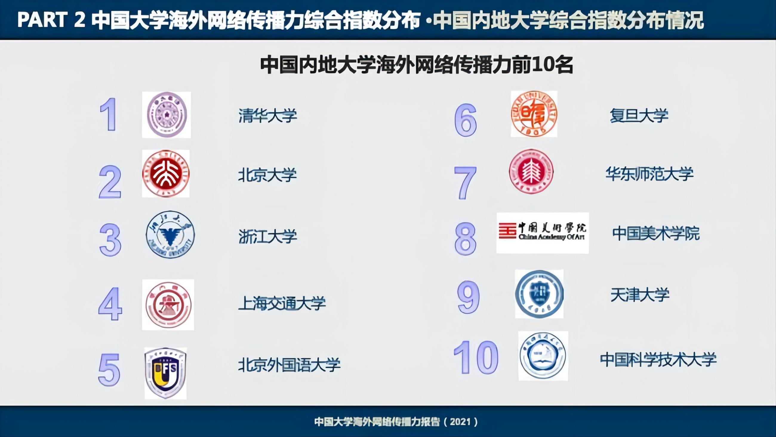 2021年12月28日,《2021中国大学海外网络传播力建设报告》(以下简称为《报告》)在北京师范大学通过线上线下结合方式成功发布。根据《报告》显示,华东师大在2021年中国内地大学海外网络传播力综合指数排名中位列第七,创历史新高。2021年中国141所内地大学海外传播力综合指数前十高校 《报告》由北京师范大学新媒体传播研究中心、北京师范大学教育新闻与传媒研究中心、北京师范大学新闻传播学院国际传播策略与效果评估研...