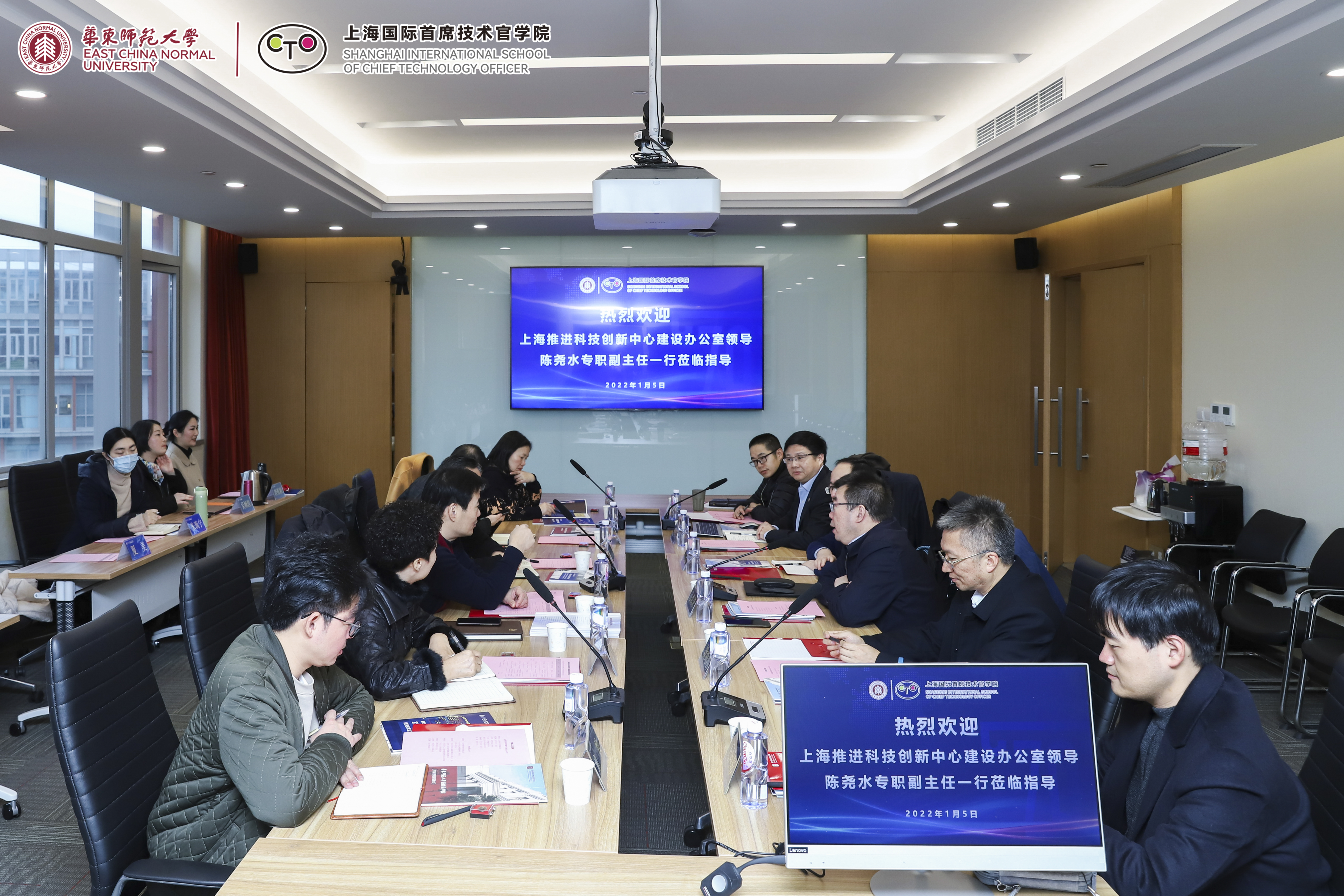 上海科创办调研上海国际首席技术官学院 1月5日,上海推进科技创新中心建设办公室(简称“科创办”)专职副主任陈尧水一行来到华东师大上海国际首席技术官学院(简称“CTO学院”)调研。上海市教委副主任、华东师大副校长、CTO学院院长孙真荣,科创办科学平台处处长张翌翀、副处长居敏敏、合作交流处处长朱爱存、人才服务处处长张励,华东师大发展规划部部长兼重点建设办公室主任段纯刚、科技处处长杨海波、CTO学院执行院长何...