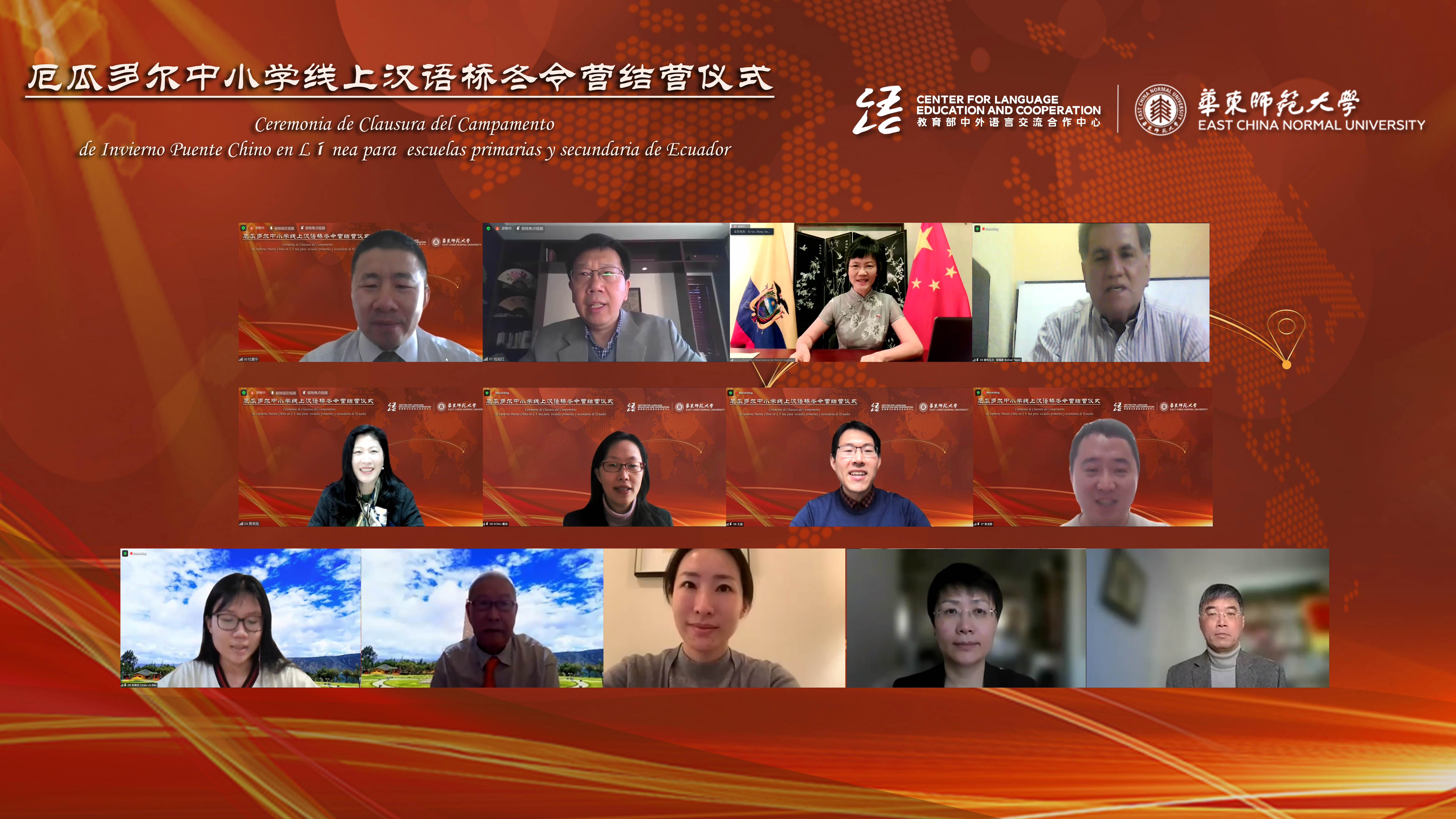 1月14日,由教育部中外语言交流合作中心(以下简称“语合中心”)主办,华东师大承办的厄瓜多尔中小学线上“汉语桥”冬令营顺利结营。结营仪式由华东师大国际合作与交流处处长杜震宇主持。厄瓜多尔中小学线上“汉语桥”冬令营结营仪式 华东师大校长钱旭红出席结营仪式,并对此次线上语言交流项目给予了高度认可与肯定。钱旭红对语合中心的大力支持表示感谢,也向顺利完成冬令营课程的厄瓜多尔学生表示祝贺。回顾近年来华...