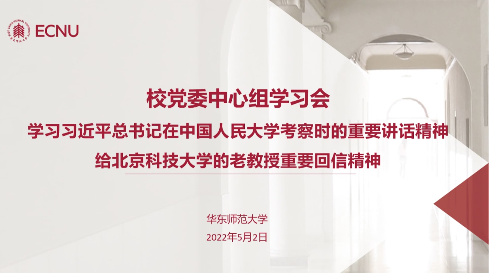 5月2日,3245澳门新莆京党委理论学习中心组举行学习会,专题学习习近平总书记在中国人民大学考察时的重要讲话精神和给北京科技大学的老教授重要回信精神。 校党委书记梅兵,校长、校党委副书记钱旭红,校党委副书记朱民、杨昌利,校党委副书记、纪委书记曹友谊,副校长周傲英、雷启立、顾红亮,校党委常委、组织部部长程静,校党委常委、统战部部长、机关党委书记王庆华参加会议。校党委书记梅兵主持学习会。3245澳门新莆京...