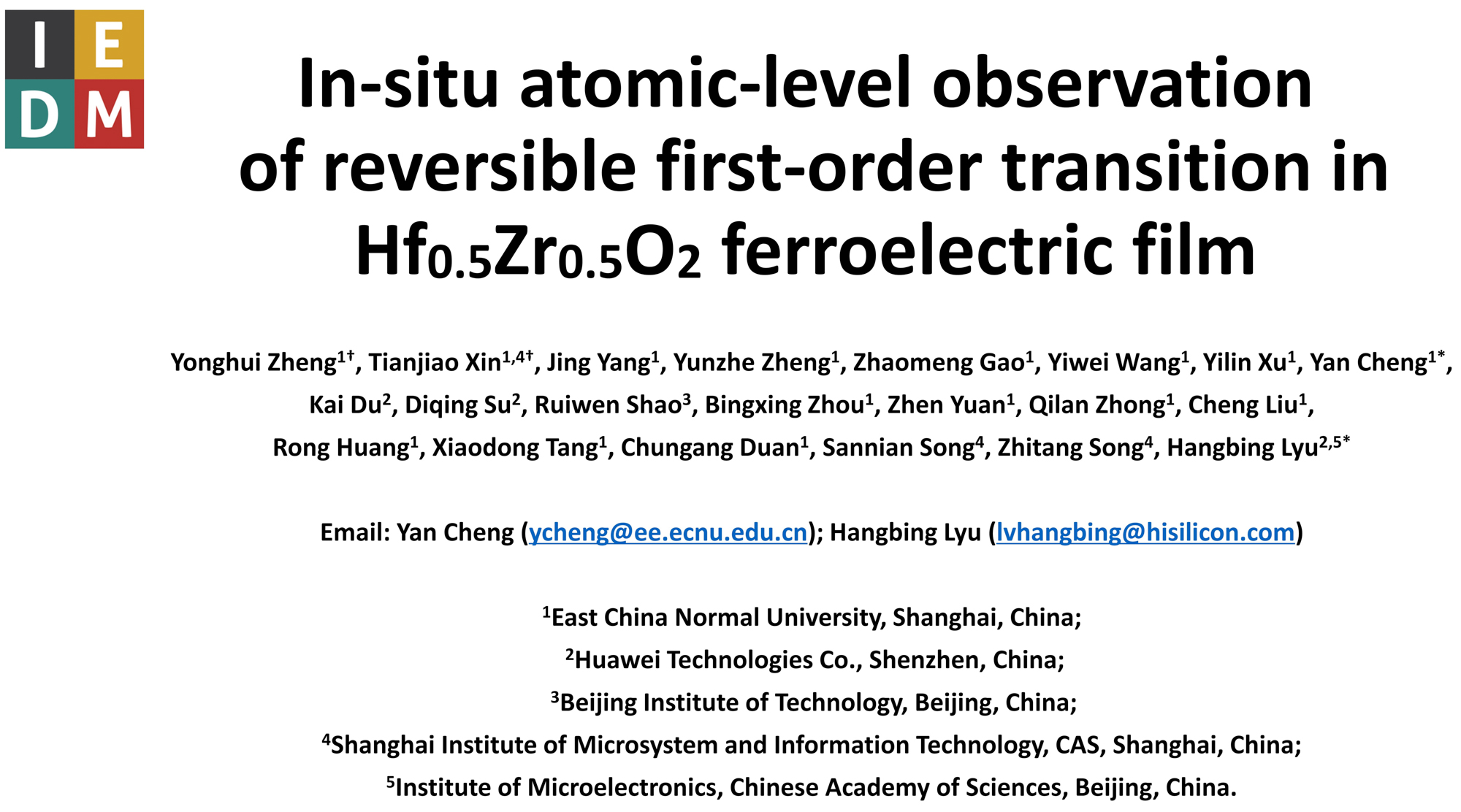 12月3-7日,第68届电气电子工程师学会(IEEE)国际电子器件会议(International Electron Devices Meeting,IEDM)在美国加州旧金山召开。极化材料与器件教育部重点实验室的研究论文“In-situ atomic-level observation of reversible first-order transition in Hf0.5Zr0.5O2 ferroelectric film”在IEDM 2022上发表。从2021年起,极化材料与器件教育部重点实验室研究成果相继入选第41届超大规模集成电路国际研讨会(VLSI 2021...