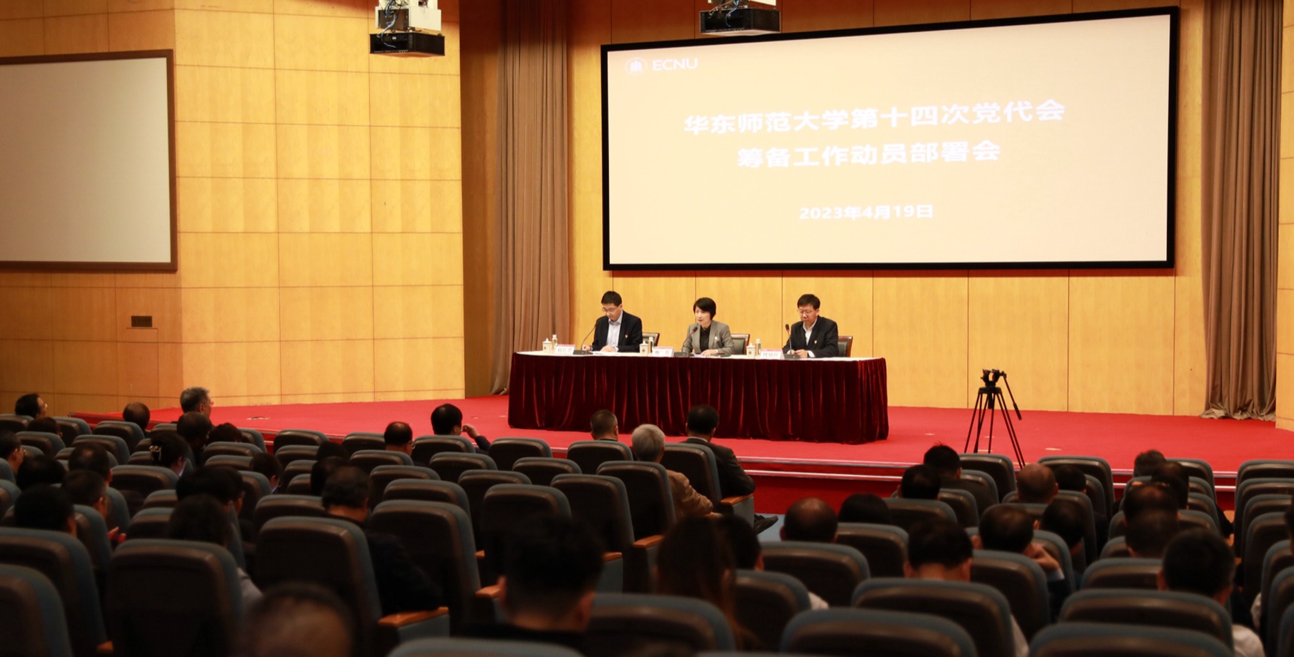 按照中央关于基层党组织按期换届的有关规定,结合学校实际,经校党委全委会研究,并报请上级党组织批复同意,华东师大第十四次党代会拟于2023年9月召开。华东师大在普陀校区科学会堂召开第十四次党代会筹备工作动员部署会第十四次党代会筹备工作动员部署会闵行校区会场 4月19日,华东师大在普陀校区科学会堂召开第十四次党代会筹备工作动员部署会。校党委书记、第十四次党代会筹备工作领导小组组长梅兵作动员讲话,校党...