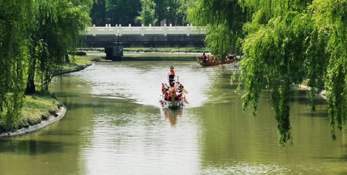 在同学们的翘首期待中,两支队伍划入樱桃河水域 同舟共济,奋楫争先。中流击水,青春无敌!5月14日下午,由党委学生(研究生)工作部、国际教育中心、体育与健康学院共同发起的中外学生龙舟友谊赛在闵行校区樱桃河举行。由汉、壮、藏等多民族学生组成的民族团结龙舟队与来自法国、俄罗斯、阿塞拜疆、土耳其、加拿大、泰国等国家的国际学生龙舟队,在樱桃河上开展了火热的水上训练和精彩的比赛。以赛会友,奋楫争先 龙舟竞...