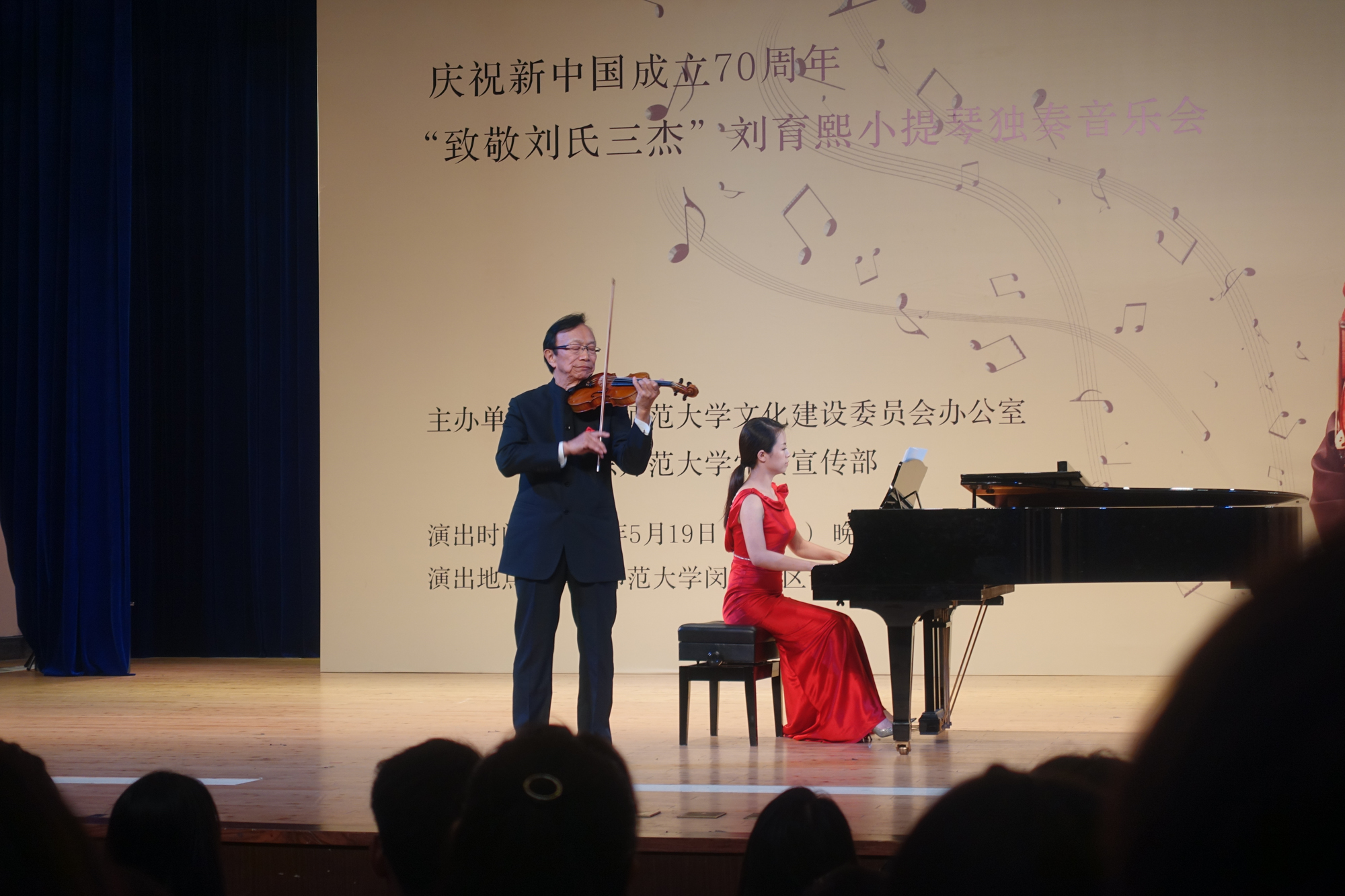 5月19日晚,“庆祝新中国成立70周年·致敬‘刘氏三杰’刘育熙小提琴独奏音乐会”在华东师大大夏舞台举行。81岁高龄的刘育熙教授饱含激情,为到场师生献上了一场震撼心灵的音乐盛宴。“庆祝新中国成立70周年·致敬‘刘氏...