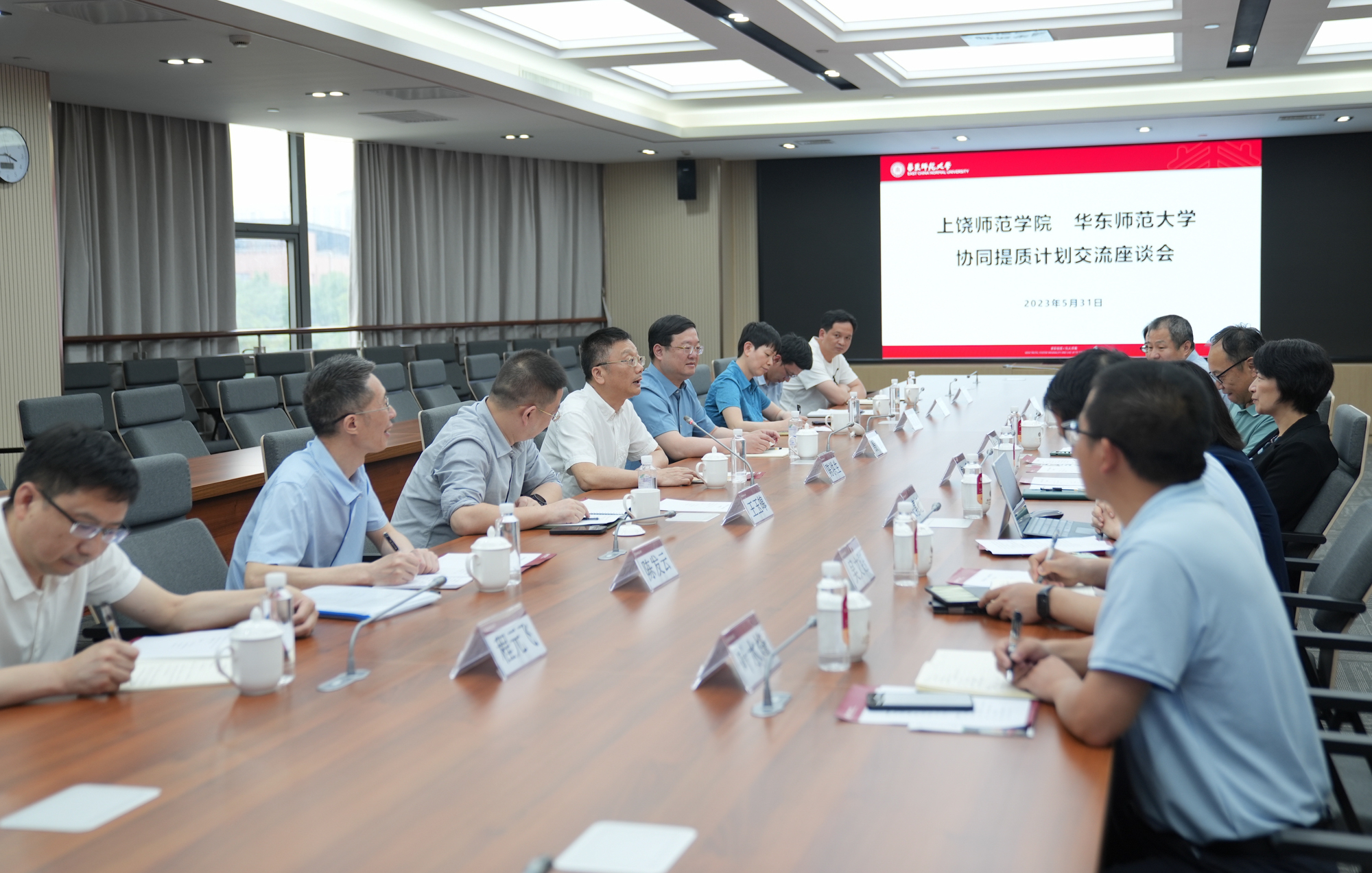 5月31日下午,党委书记梅兵会见了上饶师范学院党委书记陈洪生、校长殷剑一行,并就师范教育协同提质工作开展交流座谈。上饶师范学院党委副书记王玉皞、副校长饶爱京,华东师大副校长戴立益共同参会。会议由戴立益主持。3245澳门新莆京-上饶师范学院协同提质计划交流座谈会举行 陈洪生首先感谢华东师大长期以来对上饶师院的帮助,感激3月份举办师范教育协同提质计划交流活动时给予的倾力支持。他谈到,此次参访深入学习了华...