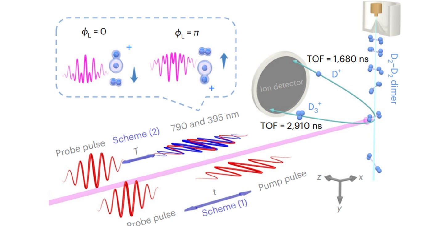 华东师大吴健教授团队近期在双分子光化学反应动力学时域观测与相干调控研究取得重要进展。该团队利用飞秒激光脉冲与D2-D2二聚体相互作用,成功测量了D3+的形成时间并实现了其出射方向的调控,揭示了自然界中最基本的分子-分子之间化学反应的内在机理。研究成果以“Ultrafast formation dynamics of D3+ from the light-driven bimolecular reaction of the D2-D2 dimer”为题,2023年6月1日发表在Nature Chemistry。《Natur...