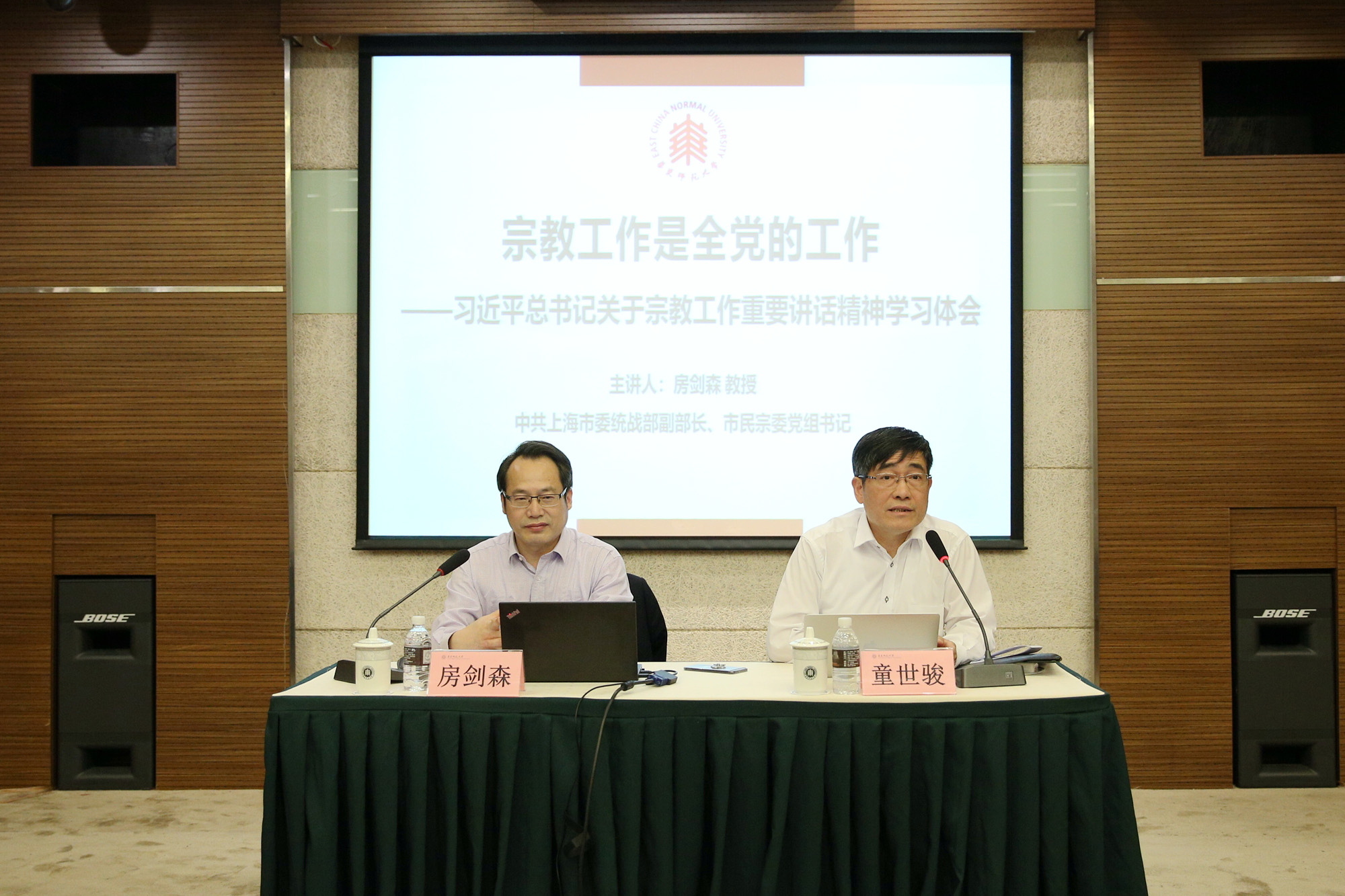5月23日,校党委中心组学习扩大会在中山北路校区举行,专题学习习近平总书记关于宗教工作的重要论述。会议邀请中共上海市委统战部副部长、上海市民族和宗教事务局党组书记房剑森教授作题为《宗教工作是全党的工作——...