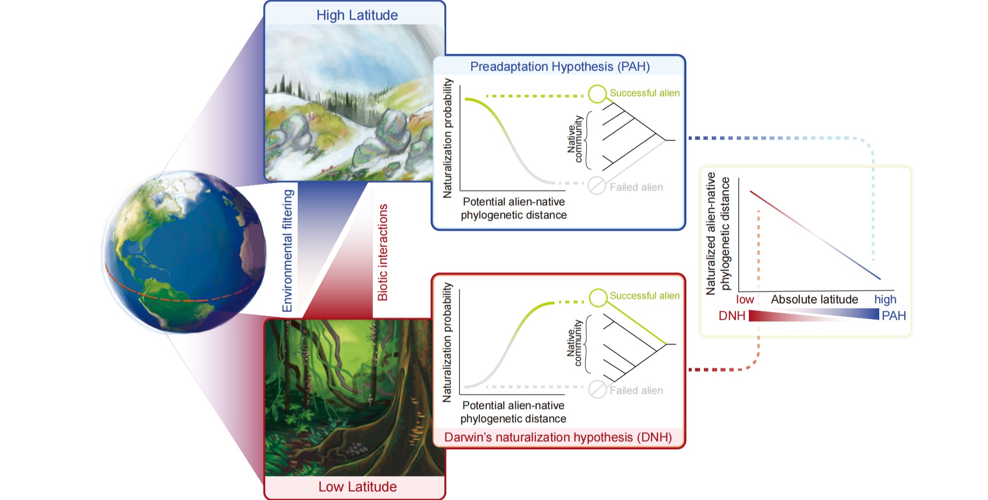 外来物种的归化正在以前所未有的速度改变着地球的面貌。探究哪些外来物种更容易成功归化和入侵,是入侵生态学力图解答的核心科学问题,也是保障国家生物安全的重要科学基础。围绕这个问题,达尔文于1859年在《物种起源》中提出了截然相反的两个假说,分别主张与本地物种亲缘关系近和远的外来物种更容易成功归化,这两个假说综合在一起被称为达尔文归化谜团。近年来,围绕这一谜团,生态学家在全球各地开展了大量的实证研究...