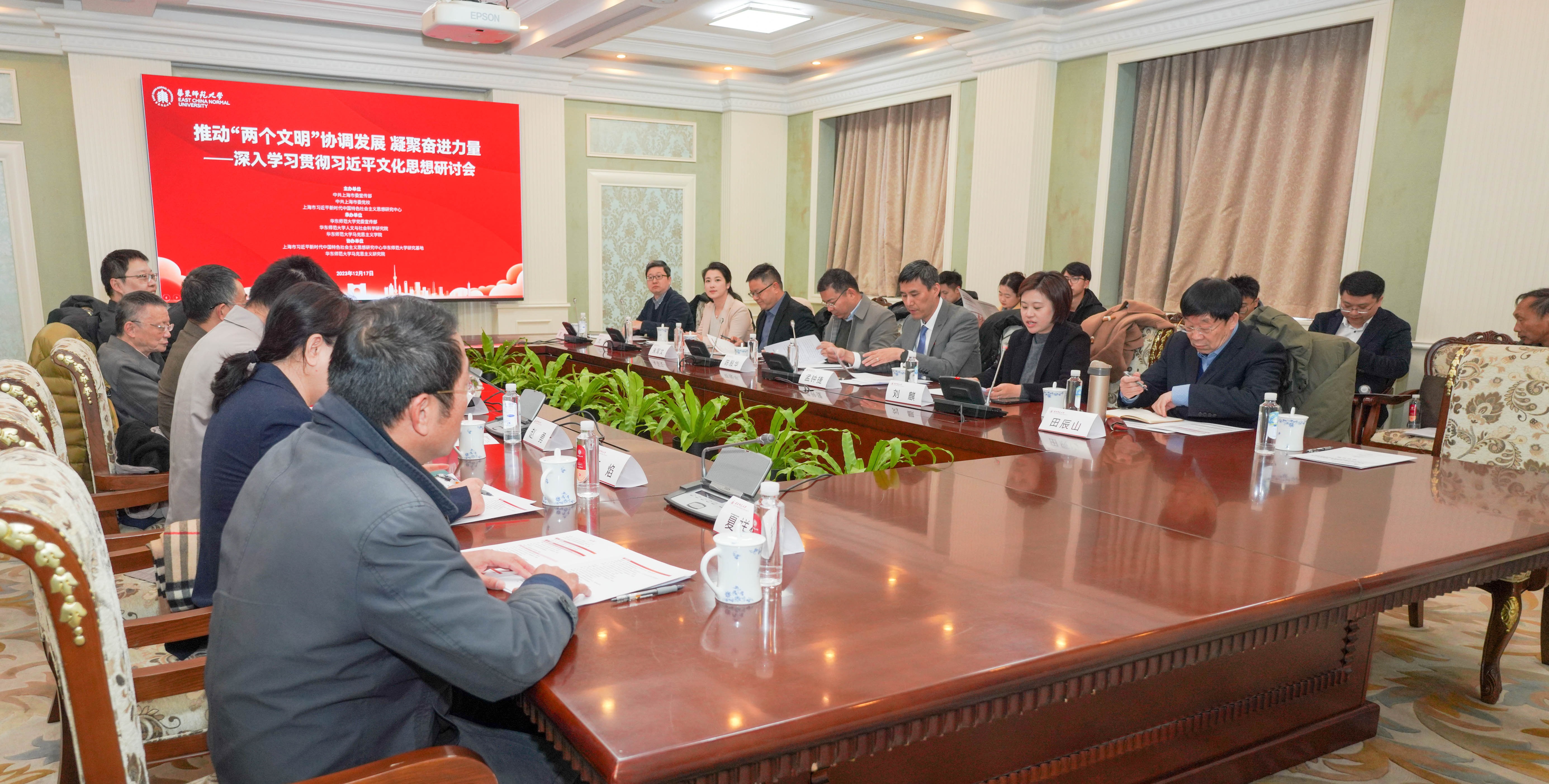 12月17日上午,推动“两个文明”协调发展,凝聚奋进力量——深入学习贯彻习近平文化思想研讨会在3245澳门新莆京普陀校区召开。上海市委宣传部理论社科党支部书记、理论处处长陈殷华,华东师大党委副书记、马克思主义学院院长孟钟捷,以及来自北京、上海理论界30余位专家学者、媒体、学生代表等共同出席会议。会议由华东师大党委宣传部常务副部长刘麒主持。深入学习贯彻习近平文化思想研讨会在华东师大召开 陈殷华在致辞中...
