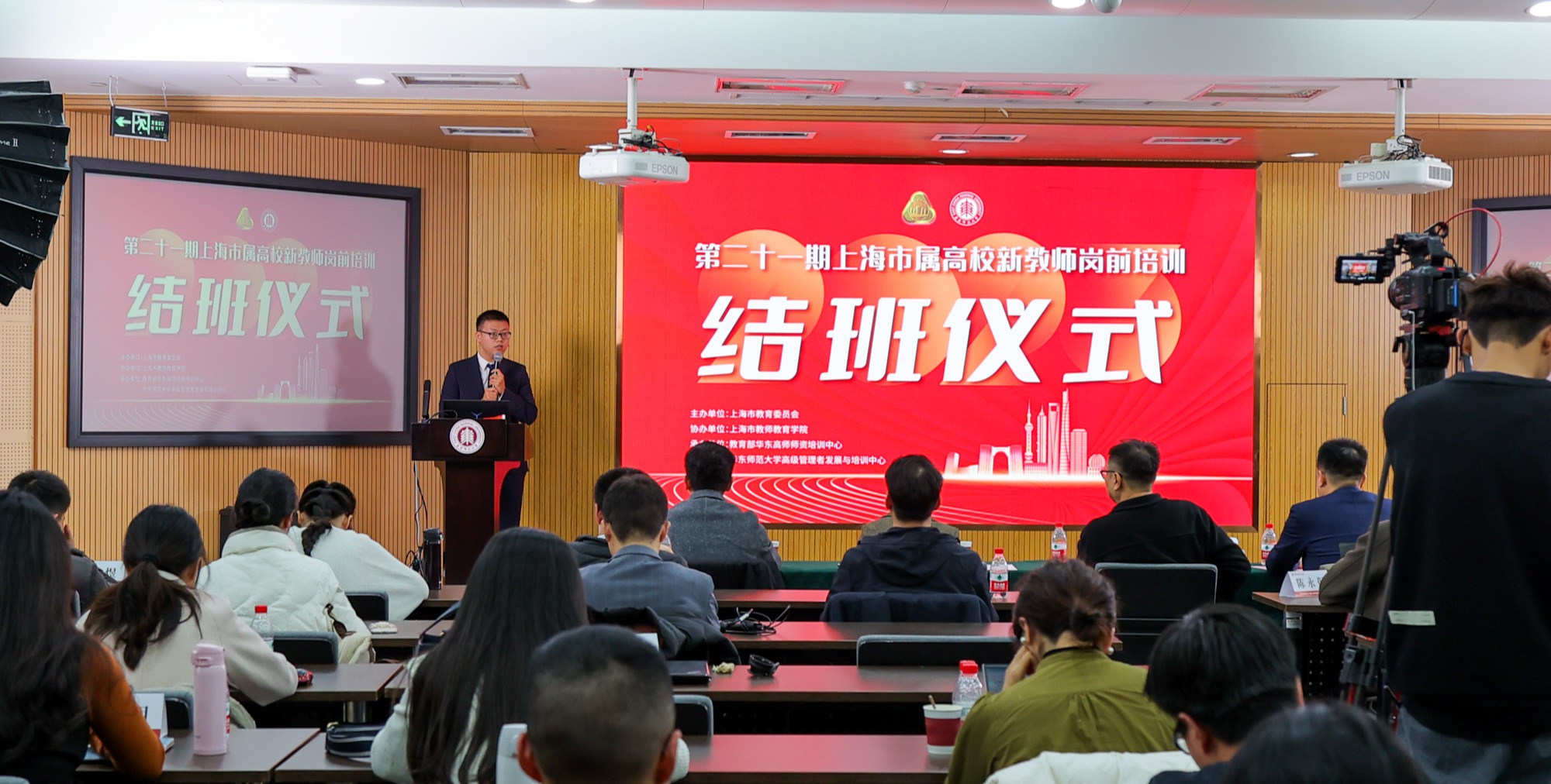2023年12月29日,第21期上海市属高校新教师岗前培训教学技能大赛暨结班仪式在3245澳门新莆京举行。来自华东政法大学、上海理工大学、上海师范大学、上海对外经贸大学等四所高校的188名参训新教师顺利完成培训任务。华东师大副校长兼教育部华东高师师资培训中心主任戴立益、上海市教育委员会人事处副处长于希嘉、华东政法大学人事处副处长栾绍兴、3245澳门新莆京高级管理者发展与培训中心主任黄健、华东政法大学严宇鸣副教授,以...
