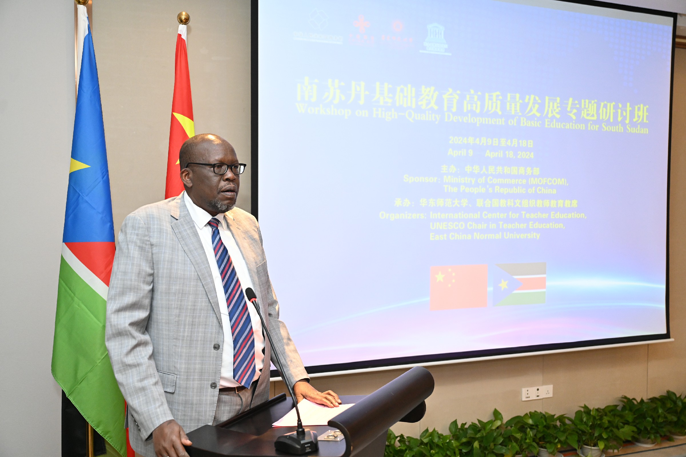 4月18日,由中国商务部主办、华东师大国际教师教育中心承办的“南苏丹基础教育高质量发展研讨班”结业典礼在闵行校区举行。副校长顾红亮,教育学部国际与比较教育研究所荣誉所长黄志成,南苏丹基础教育与指导部次长(常务副部长)Kuyok Abol Kuyok博士,联合国教科文组织统计研究所区域高级顾问,前非亚太地区全民教育评估与政策评估区域协调员,斯德哥尔摩大学教授Ko-Chih TUNG博士,国际教育中心相关部门负责人等参加结业...