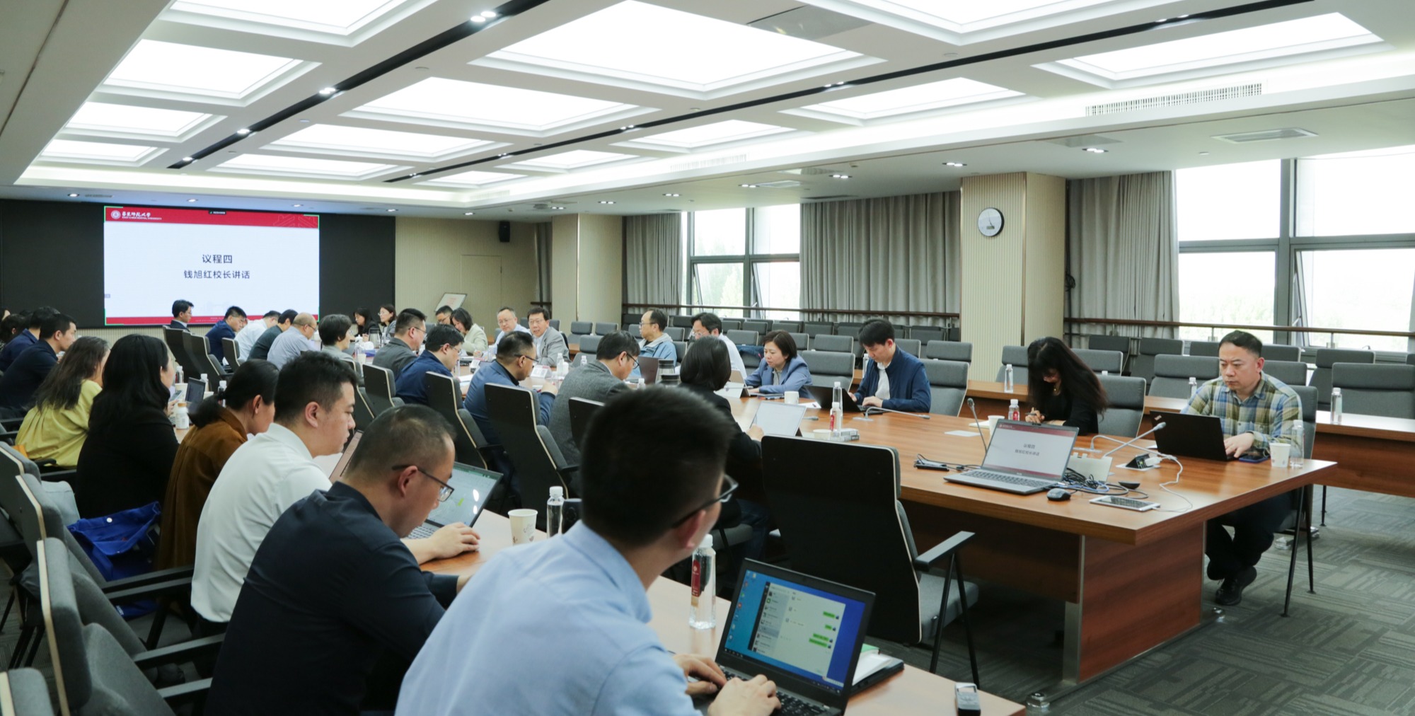 4月29日下午,华东师大在闵行校区召开行政工作例会,对学校近期行政重点工作进行通报和部署。校长钱旭红,副校长戴立益、雷启立、施国跃、程静以及机关行政部门主要负责人、教学科研实体单位行政主要负责人等出席会议。会议由钱旭红主持。行政工作例会部署近期重点工作 会上,程静部署了2024年财务预算工作;校长助理、研究生院常务副院长吴健通报了“数智跃升”相关工作情况;戴立益、雷启立、施国跃通报布置了相关条线...