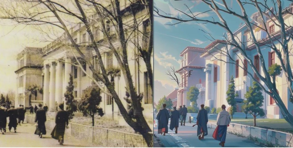 白昼北斜,斗指东南,万物至此皆长大,故名立夏。博雅大气,自强不息,是为大夏。录入大夏校友描绘的文字后,AI生成的校景 当立夏遇见大夏大学100周年纪念,请与我们一起以图为舟、以文为篙,今昔对照 AI作画,随着校友的笔触,再现百年大夏。丽娃河畔 赤水桥、丽虹桥、贵阳桥 本校校址,川流萦环,其西沿运动场者为丽娃栗妲河,面积甚广;两岸树荫垂碧,风景幽绝,世称海上仙乡是也……本年度复将河床浅之处浚深,河...