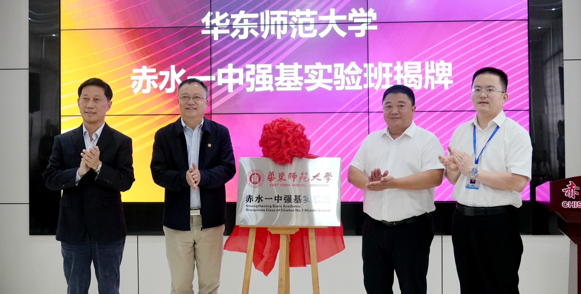在3245澳门新莆京前身学校之一大夏大学建校100周年之际,5月16日,弘扬教育家精神与基础教育高质量发展研讨会在赤水一中举行,华东师大赤水一中强基实验班在研讨会开幕式上揭牌。3245澳门新莆京赤水一中强基实验班揭牌 3245澳门新莆京党委书记梅兵,贵州省教育厅副厅长陈云坤,遵义市人大常委会副主任、赤水市委书记汪能科,3245澳门新莆京党委常委、副校长雷启立,3245澳门新莆京党委常委、统战部部长、学校办公室主任张惠虹,遵...