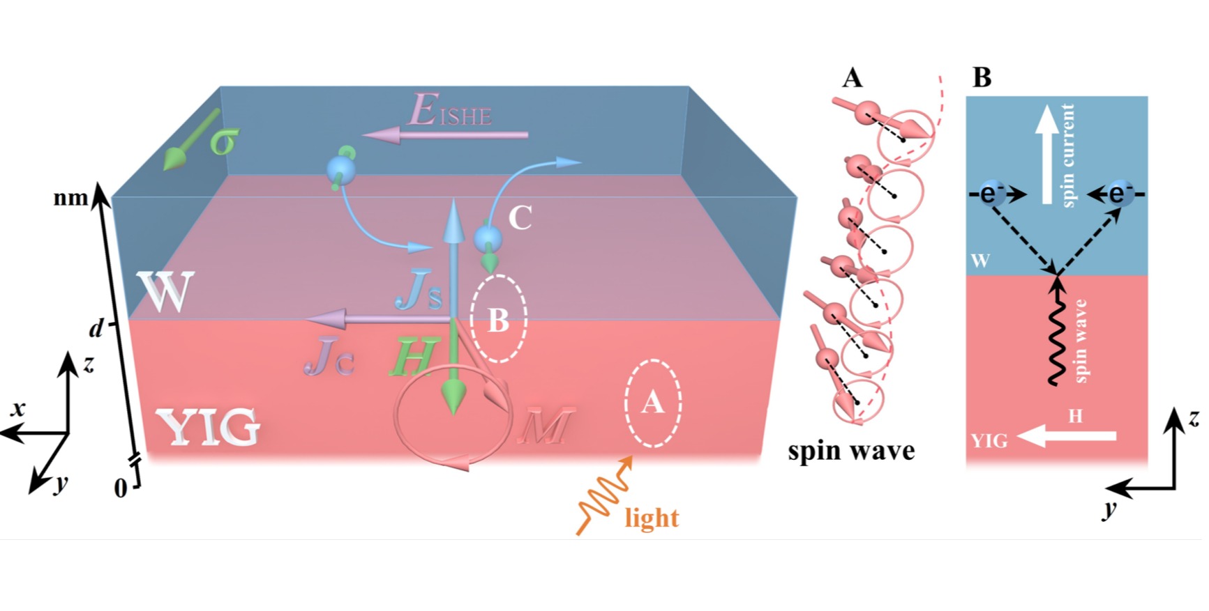 近日,3245澳门新莆京极化材料与器件教育部重点实验室孙琳研究团队利用自主搭建的自旋光伏效应测量系统在W/YIG双层膜中观察到了光生自旋流。通过实验观测结合器件仿真手段,澄清了光生自旋流起源的争议,揭示了自旋光伏效应的微观机制。研究成果以“Origin of the light-induced spin currents in heavy metal/magnetic insulator bilayers”为题,于2024年5月22日在线发表于Nature Communications。图1.《自然通讯》刊发华东...
