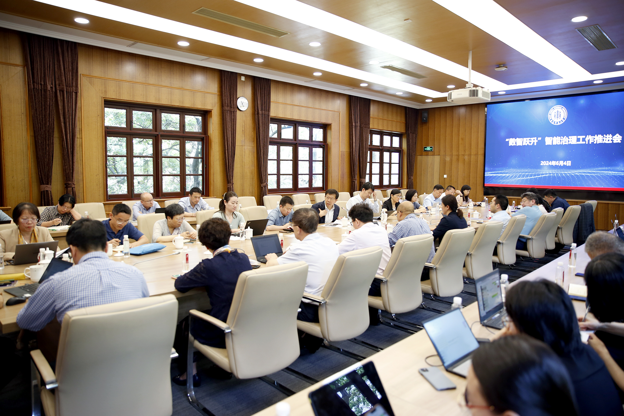 6月4日上午,学校 “数智跃升”智能治理工作推进会在普陀校区小礼堂再次召开。校长钱旭红、机关职能部门及部分直属单位的主要负责人参加了本次会议,会议由校长助理、研究生院常务副院长吴健主持。 会上,信息化治理办公室主任刘志鹏详细报告了自5月初推进会以来,在各部门的通力合作下,围绕数智跃升计划智能治理系列平台开展的数据验收、功能优化及公共数据库改版等相关工作。研究生院、财务处、人事处分别汇报交流了...