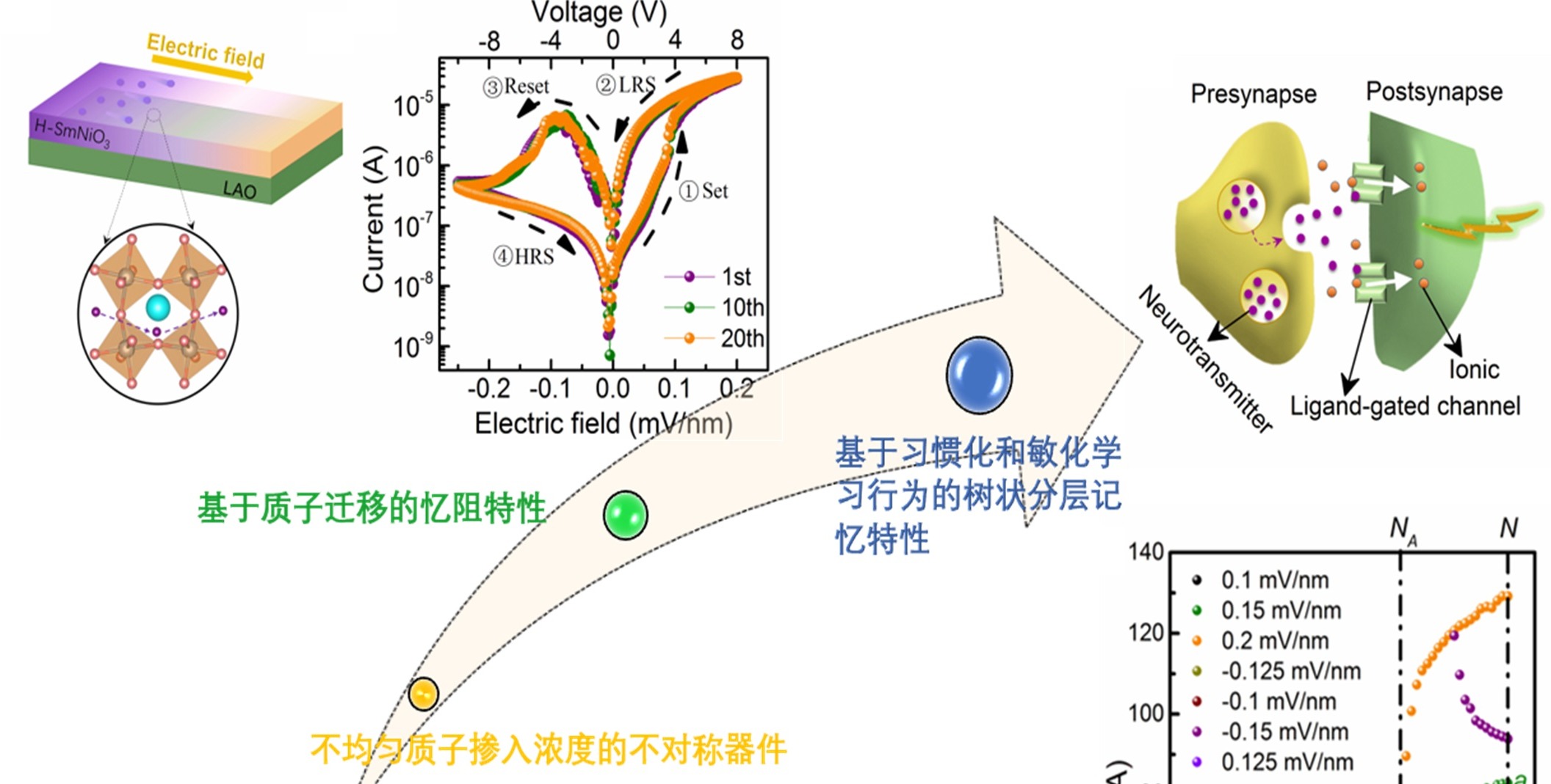 近期,3245澳门新莆京极化材料与器件教育部重点实验室、上海类脑与智能材料与器件研究中心段纯刚教授、向平华教授、钟妮教授科研团队在神经形态人工突触器件研究中取得重要进展。利用氢质子在关联氧化物量子材料中的空间演化实现了生物突触中基于习惯化和敏化学习行为的树状分层记忆特性,为开发具有自我学习和联想记忆能力的人工智能硬件提供了新思路。 研究成果以“Spatial evolution of the proton-coupled Mott transi...