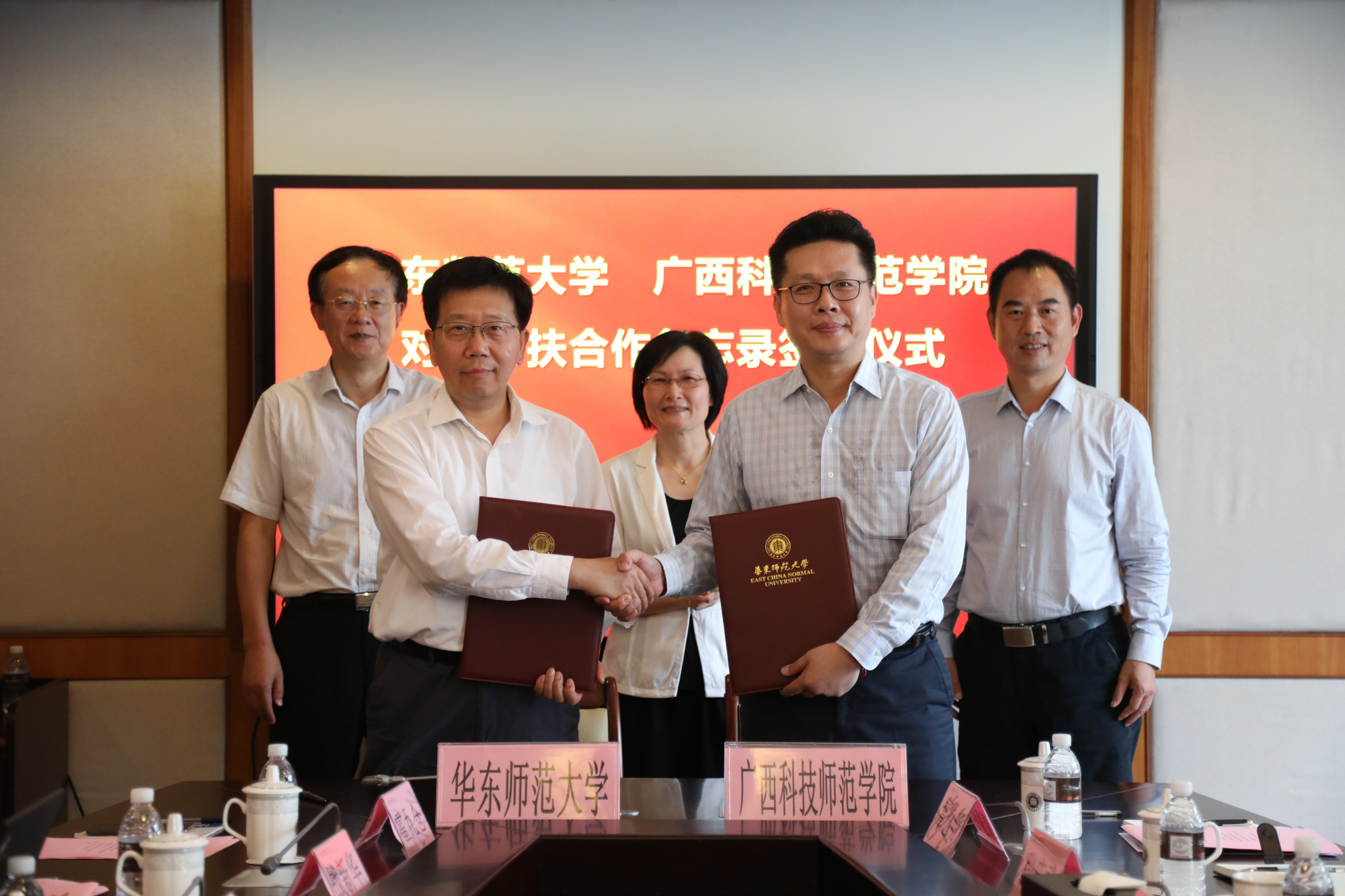 华东师大与广西科技师范学院签署对口帮扶合作备忘录 6月25日,我校与广西科技师范学院签署对口帮扶合作备忘录。校长钱旭红、副校长李志斌,广西科技师范学院党委书记陈贵英、校长张鹏,以及双方相关单位负责人共同...