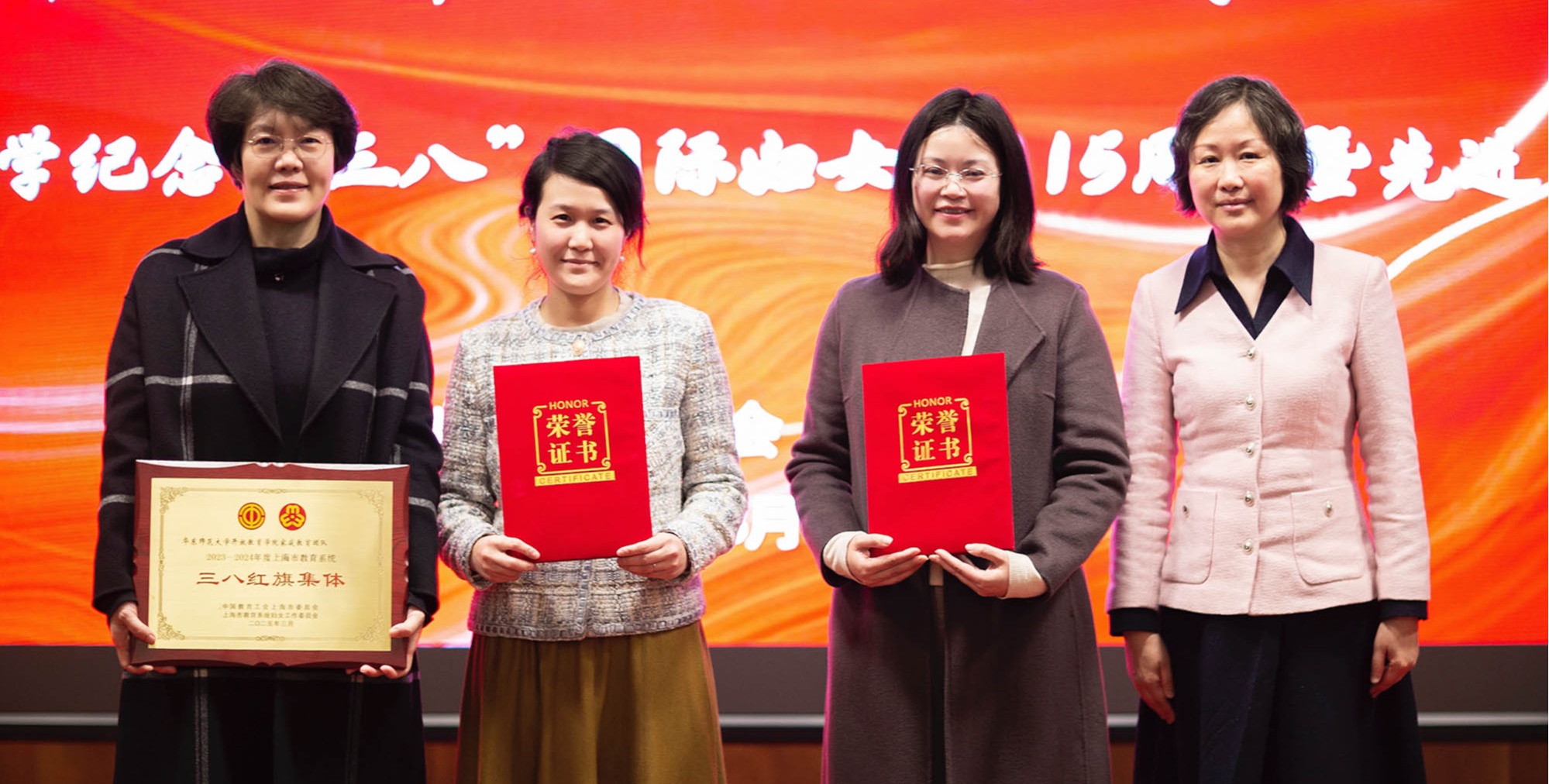 3月7日下午,华东师大庆祝第115个“三八”国际妇女节暨先进表彰会举行。校领导、校工会两委委员、妇委会委员、各部门工会主席、女工委员、女大学生代表以及获得各类荣誉称号的先进个人和先进集体代表等欢聚一堂,共庆节日。华东师大庆祝第115个“三八”国际妇女节暨先进表彰会举行 梅兵书记、钱旭红校长向全校女同胞送祝福—— 亲爱的师大女同胞们: 值此第115个“三八”国际妇女节到来之际,谨代表学校向全校女教...