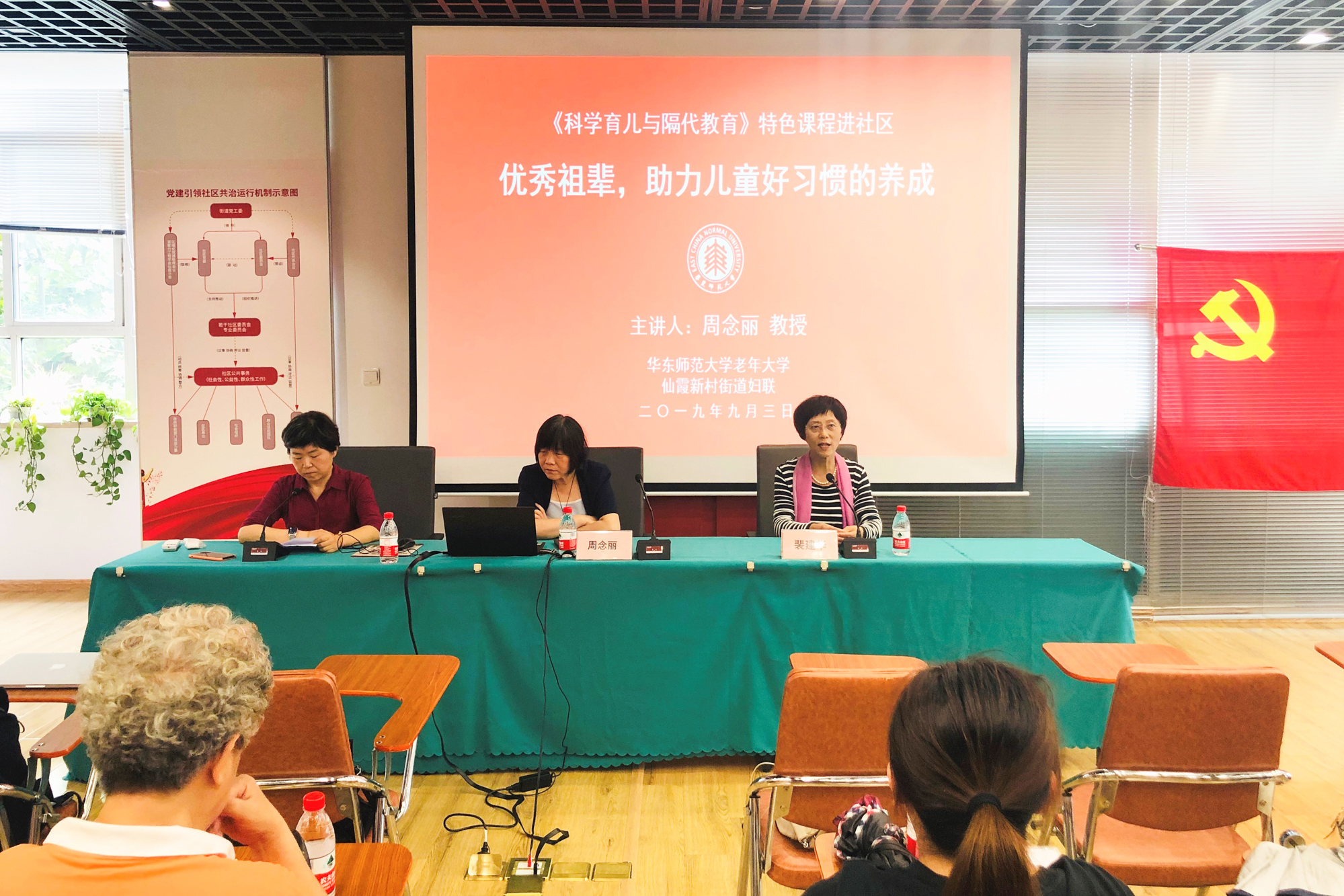 9月3日下午,华东师大老年大学“传家宝——隔代教育面面观”之《科学育儿与隔代教育》特色课程进社区专题讲座在长宁区仙霞街道社区党建服务中心举行。华东师大老年大学特色课程进社区 讲座伊始,仙霞街道妇联主席...