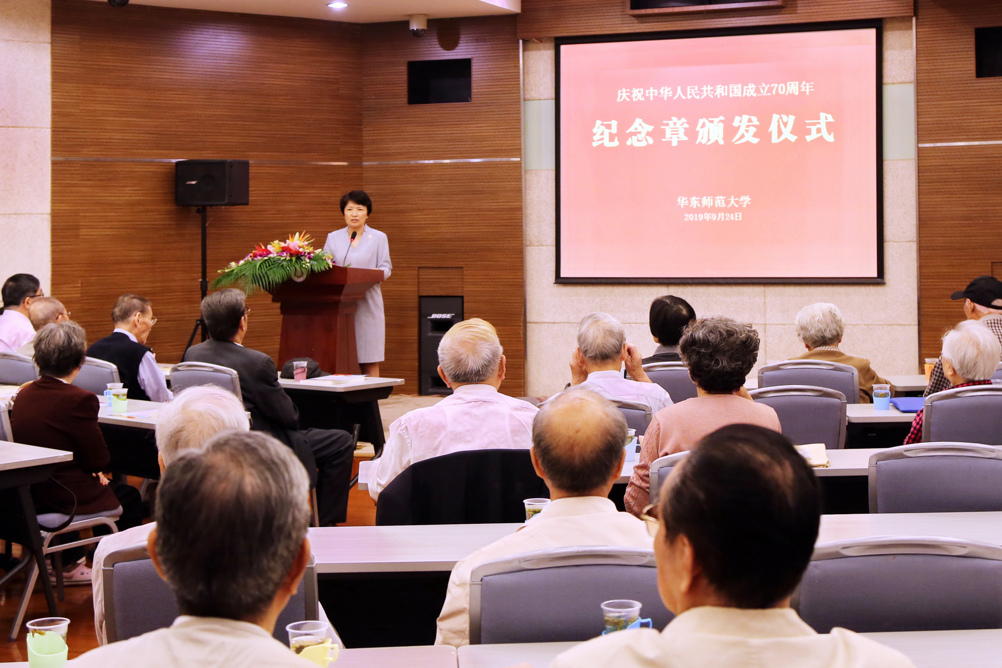 9月24日上午,我校在逸夫楼校长培训中心3楼多功能厅隆重举行“庆祝中华人民共和国成立70周年”纪念章颁发仪式,校党委书记、老龄委主任童世骏,副校长、老龄委副主任梅兵为与会的23位老同志颁发纪念章。我校离退休干...