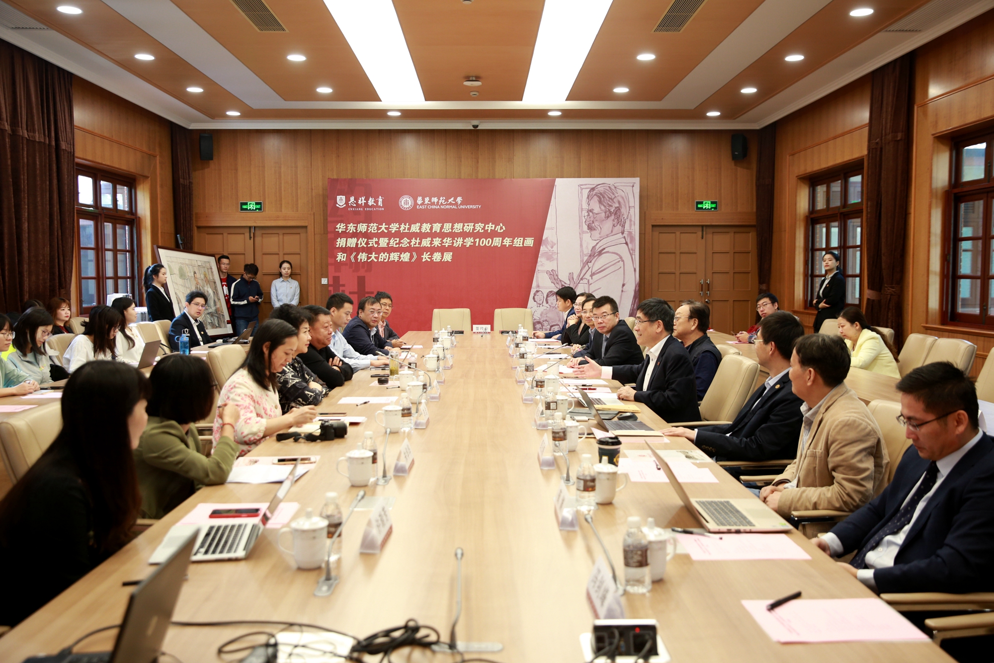 10月16日,华东师大杜威教育思想研究中心捐赠仪式暨《伟大的辉煌》长卷和纪念杜威来华讲学100周年组画展在我校中山北路校区举行。原上海市委秘书长、华东师大77级政教系校友范德官,海南省文学艺术界联合会副主席、海...