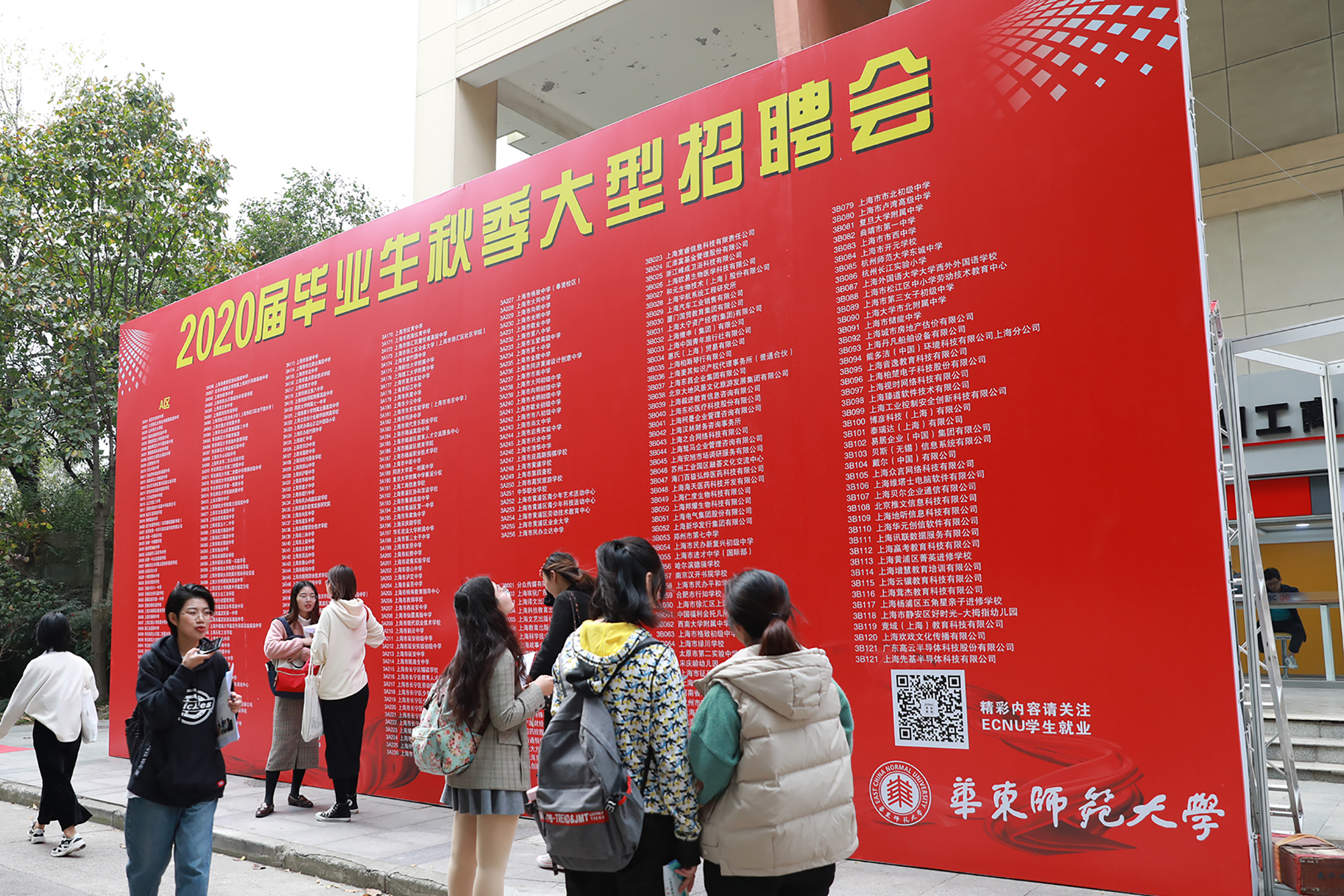 11月13日至14日,我校2020届毕业生秋季大型招聘会在中山北路校区举行。本次活动设立教育、企业、校友单位三个招聘专场,共吸引了1200多家用人单位报名参加,提供近15000个优质工作岗位。据初步统计,本次招聘会约有3...