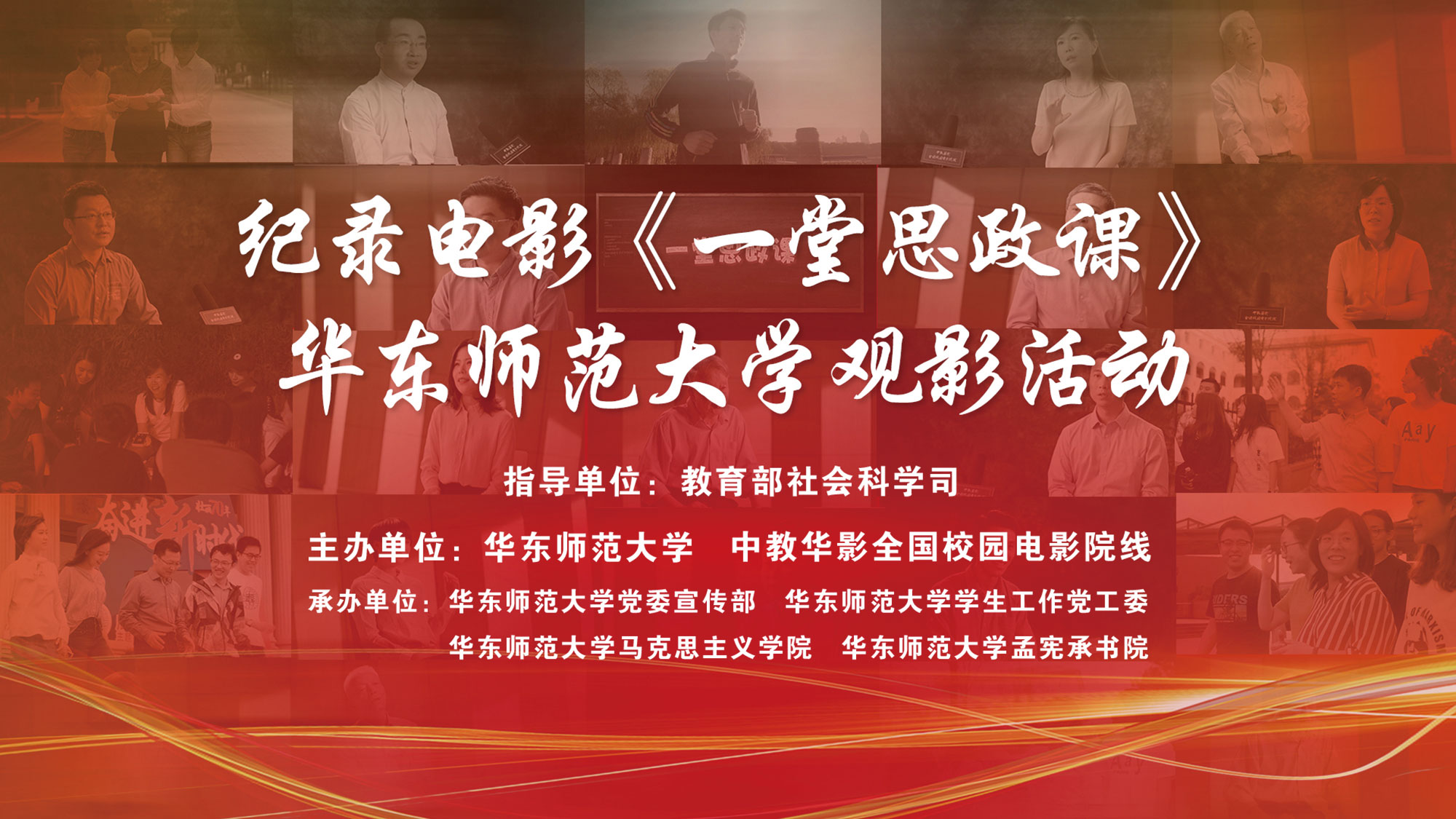 12月18日下午,由教育部社会科学司指导,中教华影全国校园电影院线拍摄制作的纪录电影《一堂思政课》在华东师大上映。来自马克思主义学院的40余名思政课教师、青年马克思主义者学院第24期学生预备党员培训班学员以及...