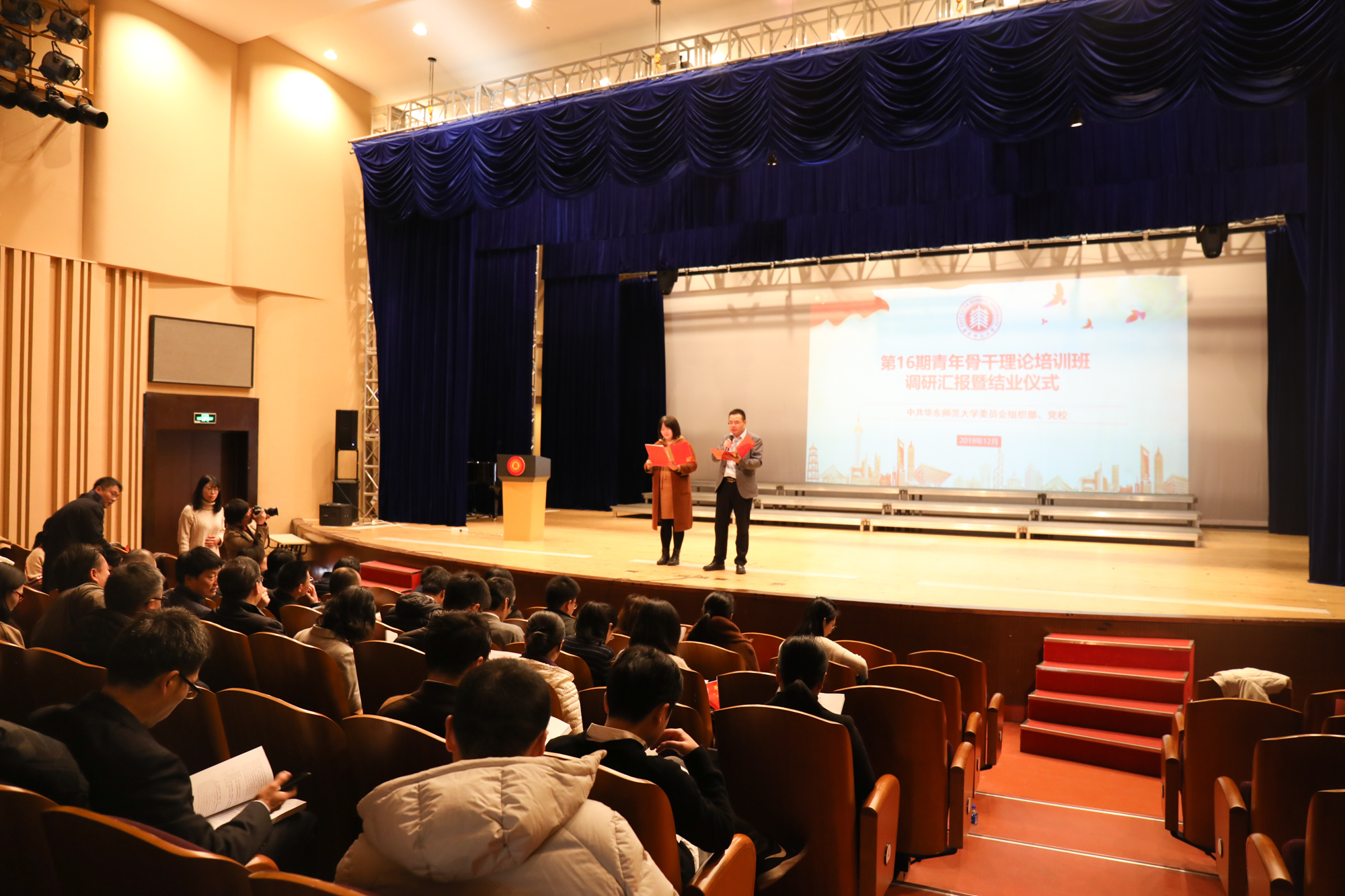 12月20日,第16期青年骨干理论培训班(简称“青干班”)课题汇报暨结业仪式在闵行校区音乐厅举行。校党委副书记朱民,校党委常委、组织部部长程静,党校副校长张俊华,组织部相关领导及第16期青年骨干理论培训班全体...